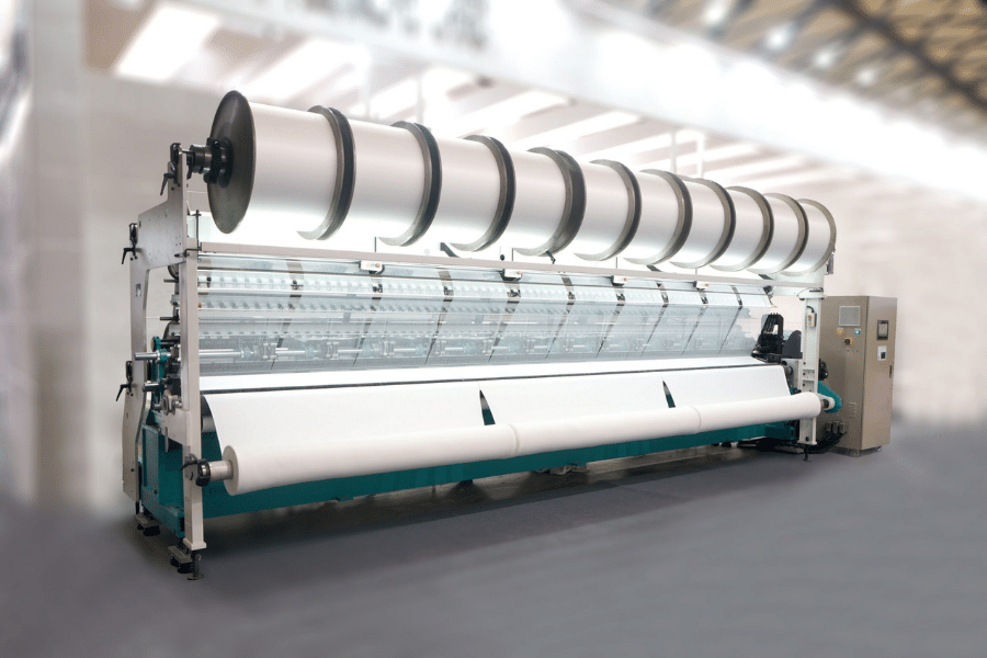 آلة الضبط ← نسيج النسيج ← إزالة الزيت والصباغة ← إضافة عامل رفع الصوف ← الجفاف ← التجفيف ← الشعر الخشن ← التمشيط ← القص ← بيلينغ ← ضبط الحرارة ← اللف ← التعبئة